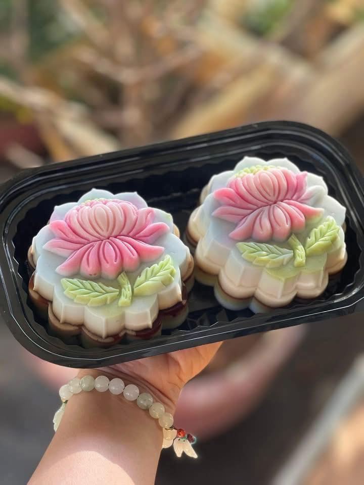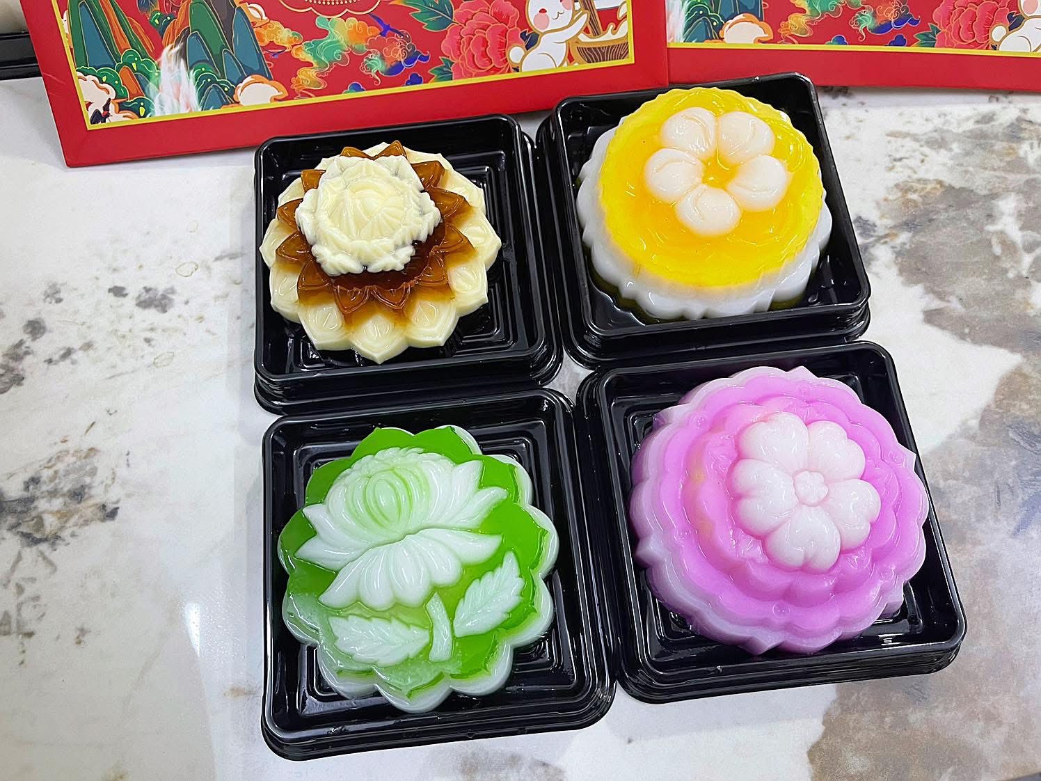 Đổ rau câu trung thu: Định hình rau câu theo dạng bánh trung thu mini.