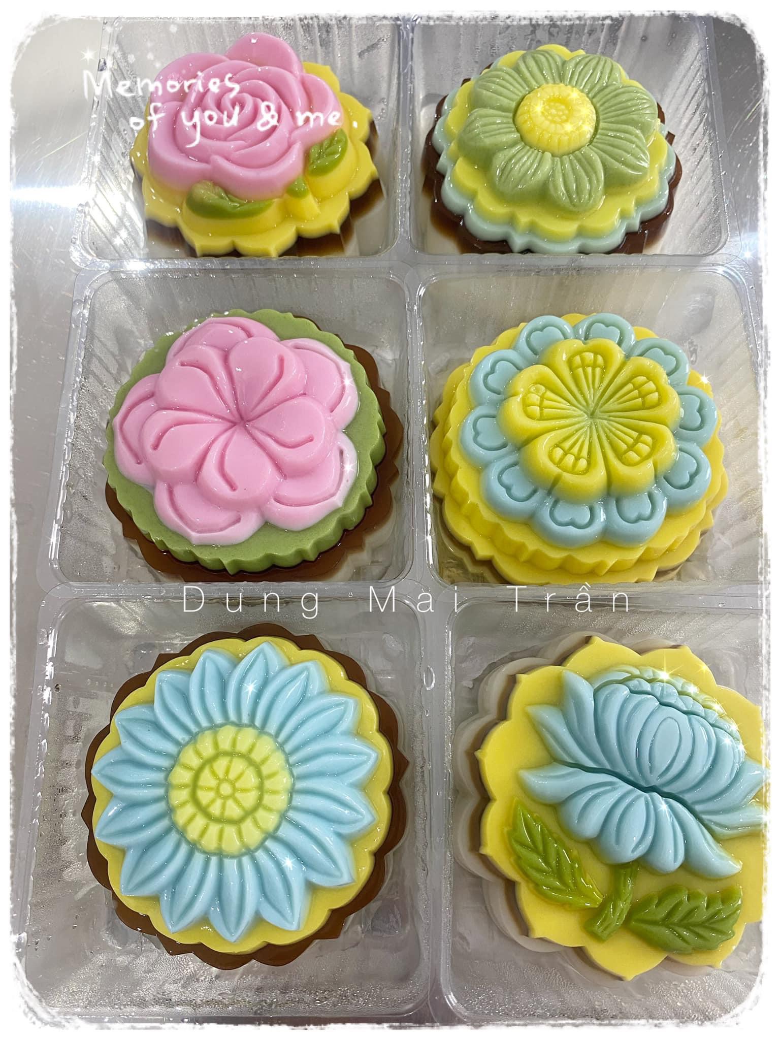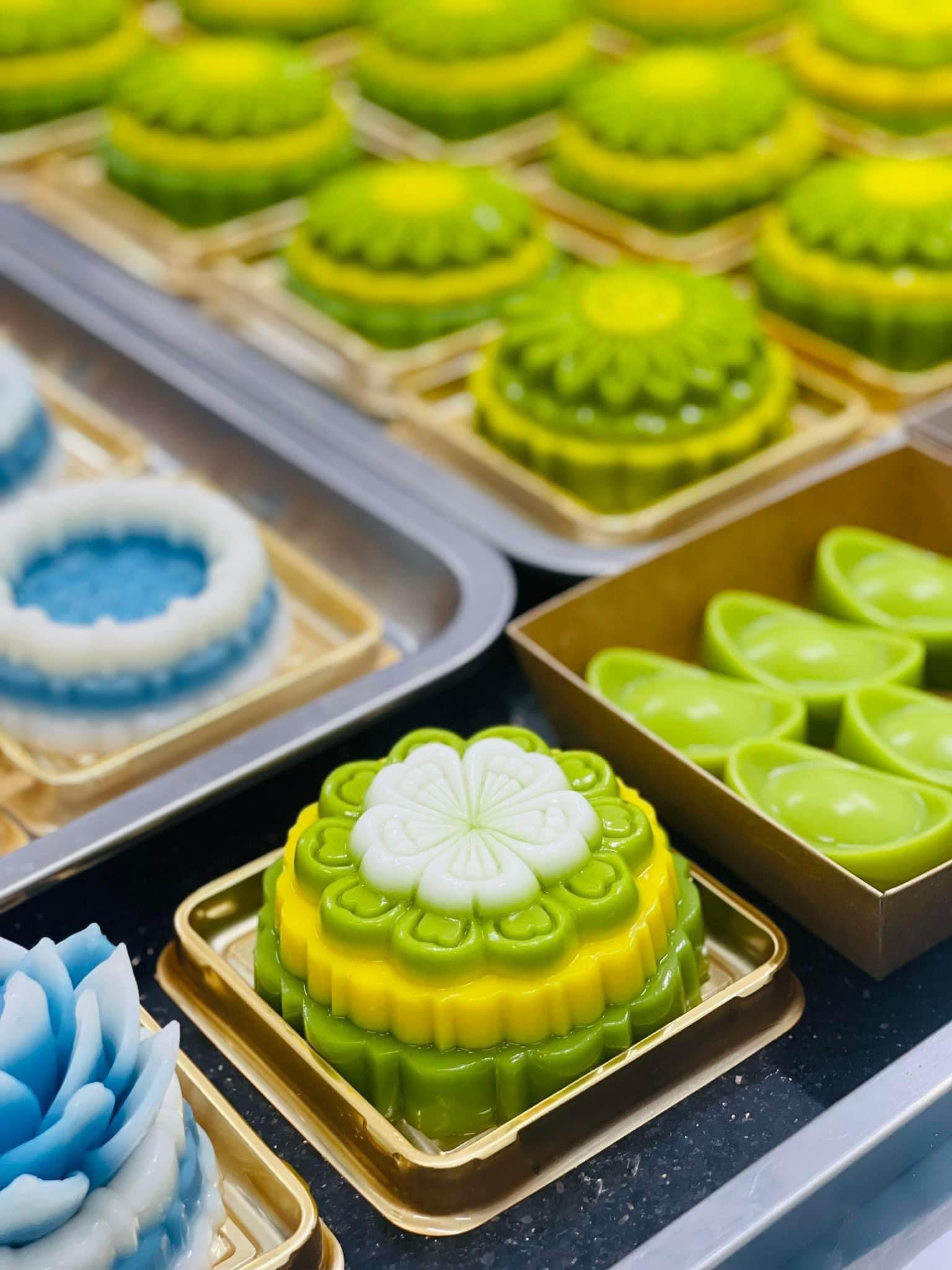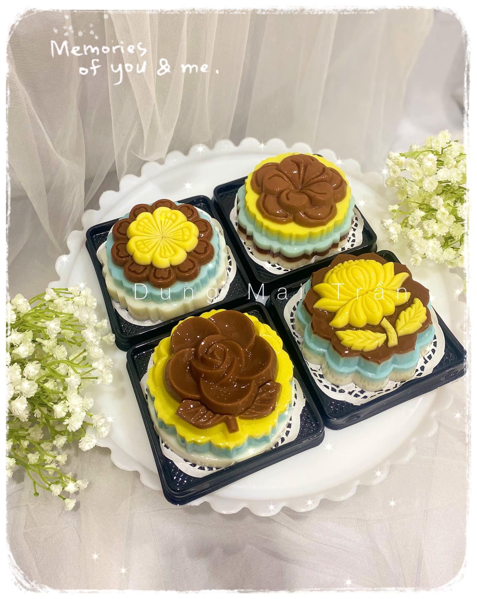 Đổ rau câu trung thu: Định hình rau câu theo dạng bánh trung thu mini.
